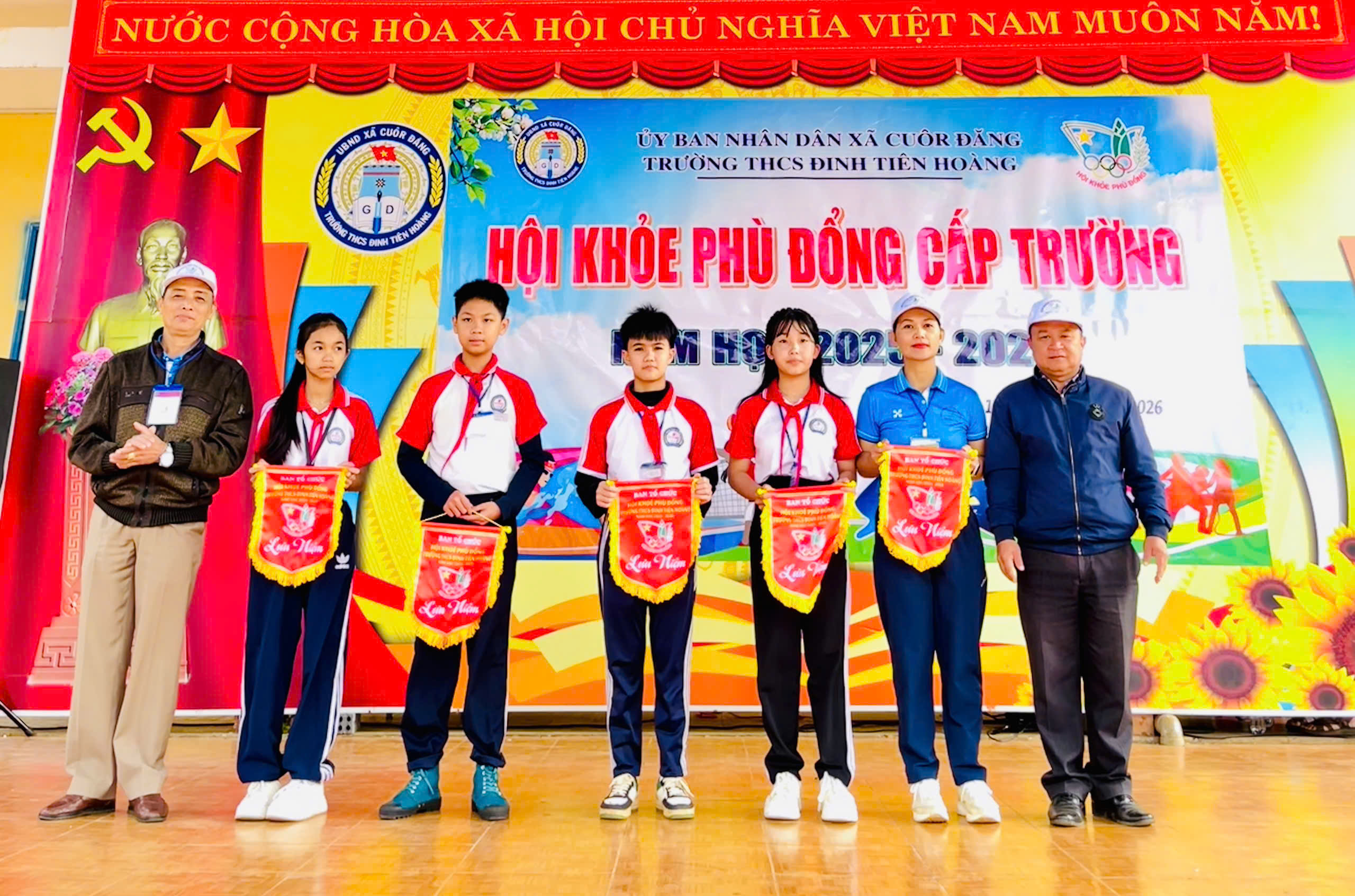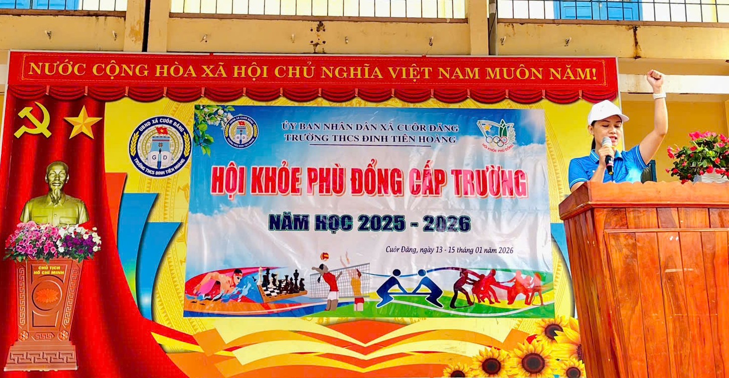 Sáng ngày 13/01/2026 Trường THCS Đinh Tiên Hoàng long trọng tổ chức Lễ khai mạc Hội khỏe Phù Đổng cấp trường. Đến dự Lễ khai mạc có ông Nguyễn Tiến Trường – Phó Chủ tịch Ủy ban nhân dân xã Cuôr Đăng; bà Nguyễn Hồng Phương – đại diện Hội phụ huynh học sinh nhà trường; cùng đại diện các đơn vị trường học trên địa bàn xã Cuôr Đăng.